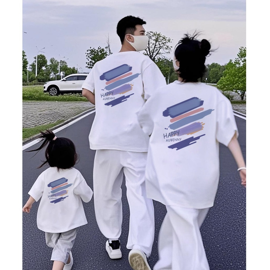Dosmino Baju Keluarga Oversize T-shirt impor /T-shirt lengan pendek keluarga terbaru Cetak grafiti biru dan merah muda/100 Cotton Kaos Anak T000874