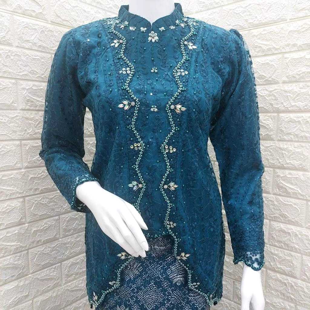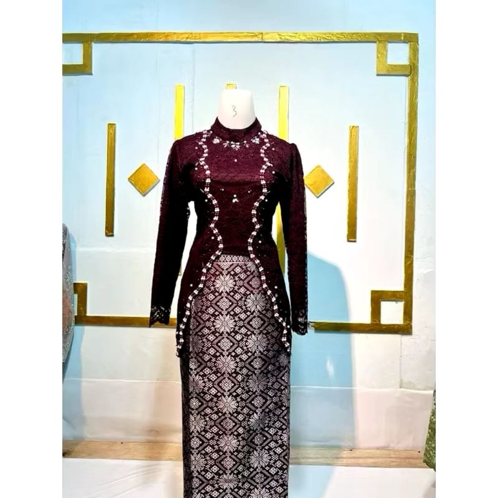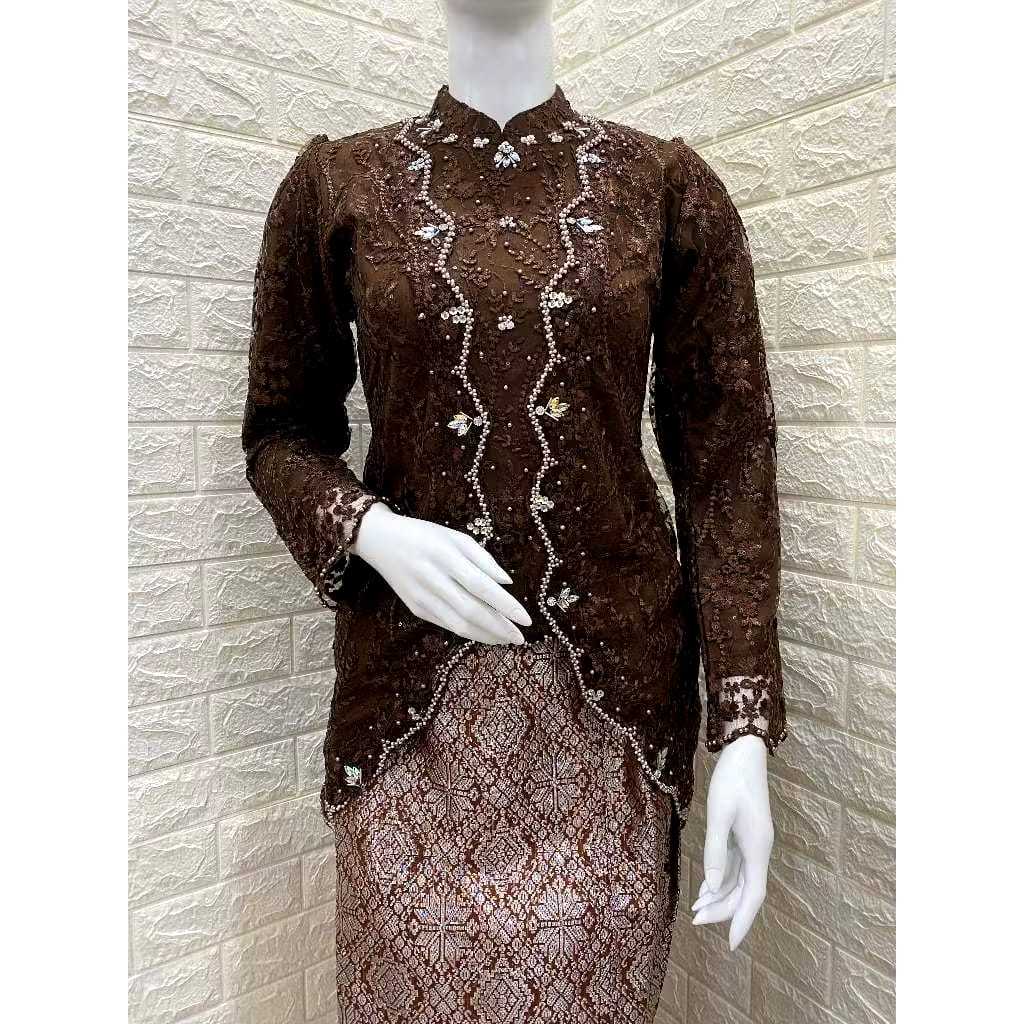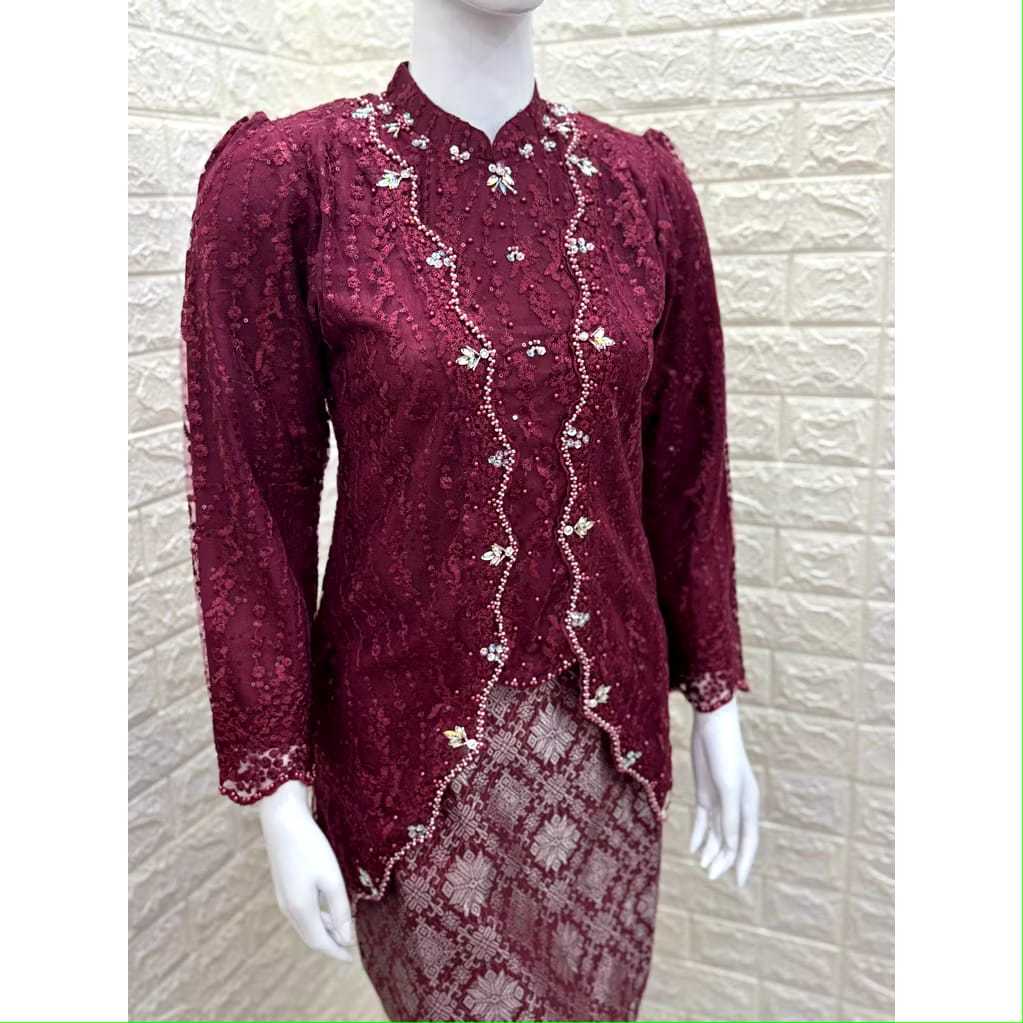 Kebaya Modern Premium Lace Berfuring Set + FREE Hijab - Baju Kondangan Lamaran Wisuda Formal Wanita