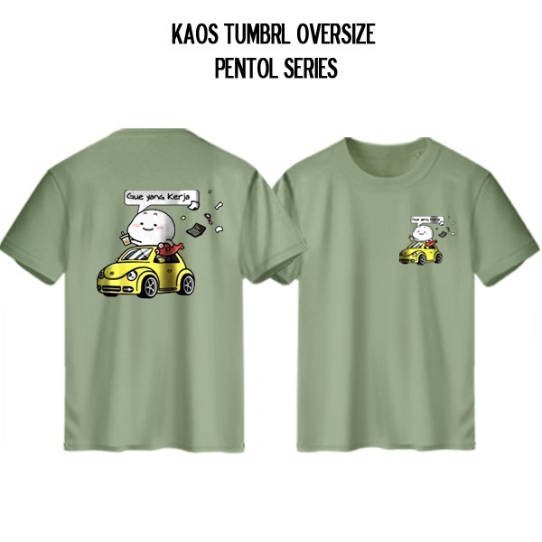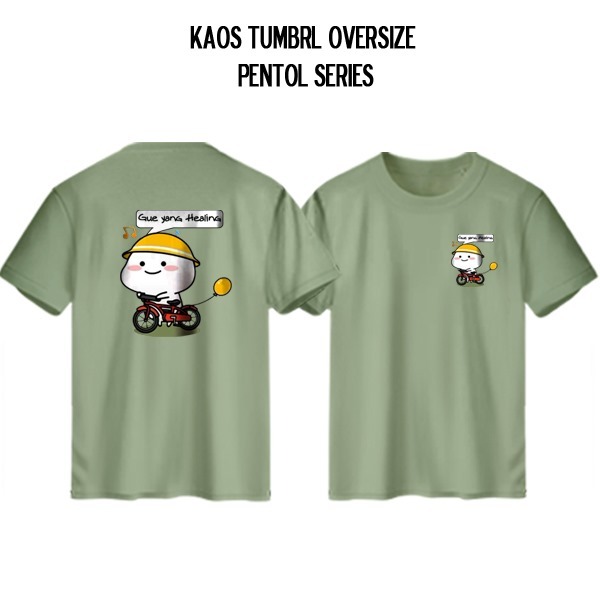 Kaos Couple Keluarga Ayah Ibu Anak Motif Pentol Yang Kerja Healing Jajan Warna Sage Green vol 2