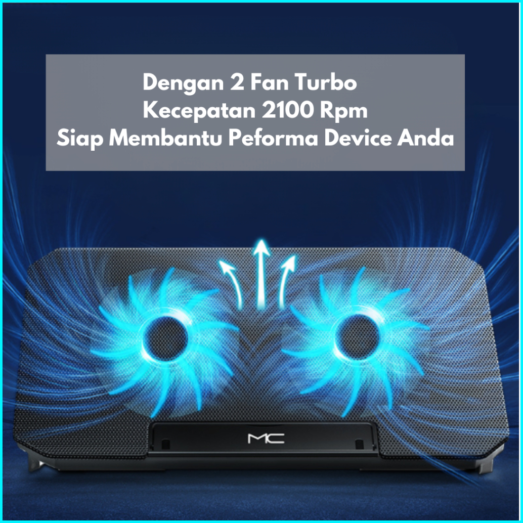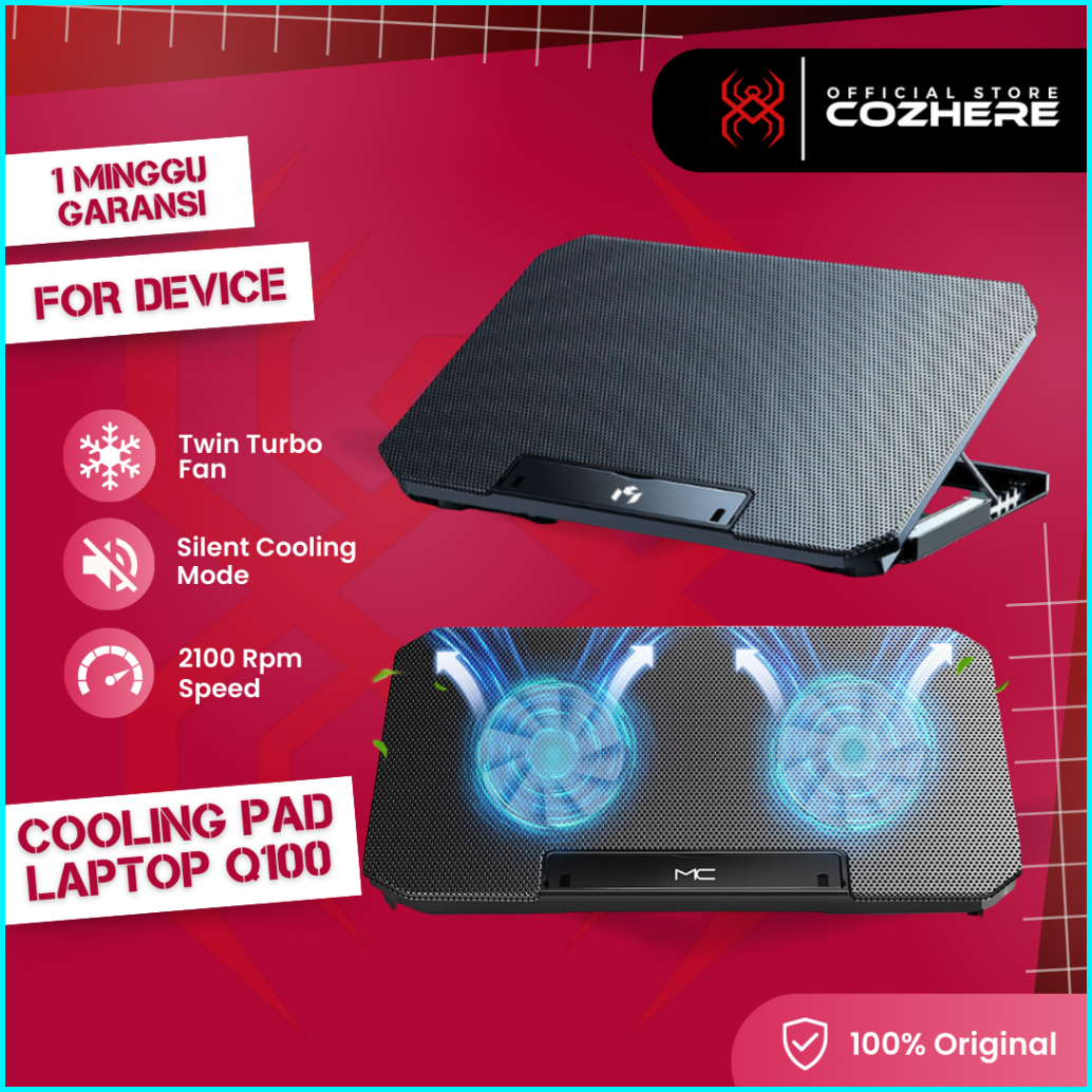 Cooling Pad Kipas Laptop Fan Cooler Pendingin Leptop Gaming Mute Cooling Q100 Fit 12 Sampai 16 Inch Turbo Speed 2100 Rpm