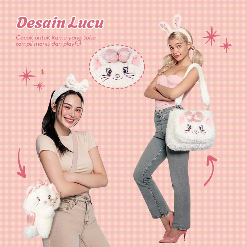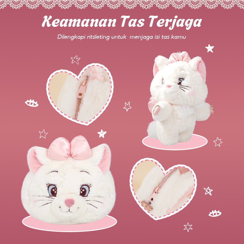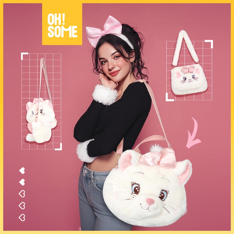 [OHSOME x Disney] - Disney Egradable Marie the Cat Series Plush Crossbody Bag Tas Selempang Sling Bag Wanita Karakter Disney