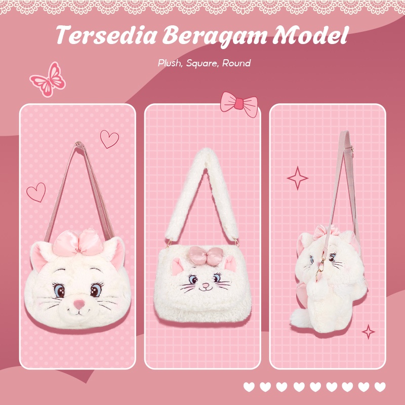 [OHSOME x Disney] - Disney Egradable Marie the Cat Series Plush Crossbody Bag Tas Selempang Sling Bag Wanita Karakter Disney