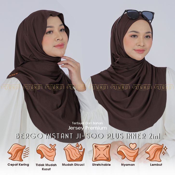 Hijab Bergo Instan Meleyot Pasmina Inner 2in1 Jilbab Viral Jersey Premium