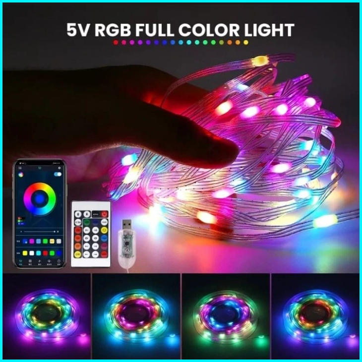 Lampu Led String Running Rgb 10 Meter 5v Sensor Suara Remote Dan Bluetooth