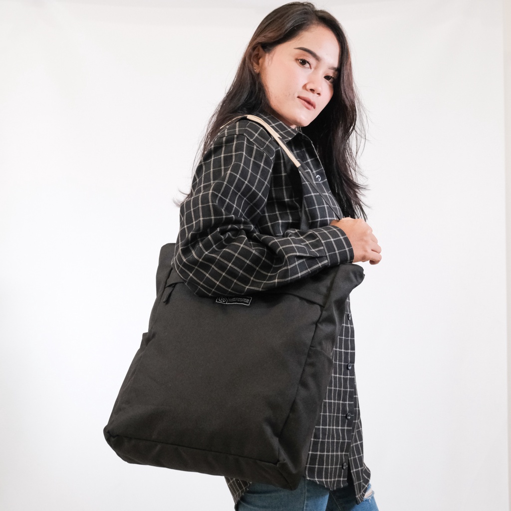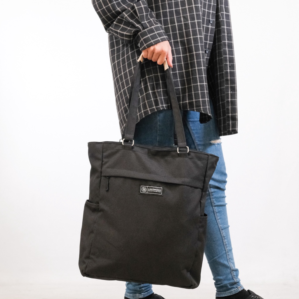 Lokomoko Totebag Marva Black Tas Jinjing Kuliah Tote Bag Resleting Pria Wanita