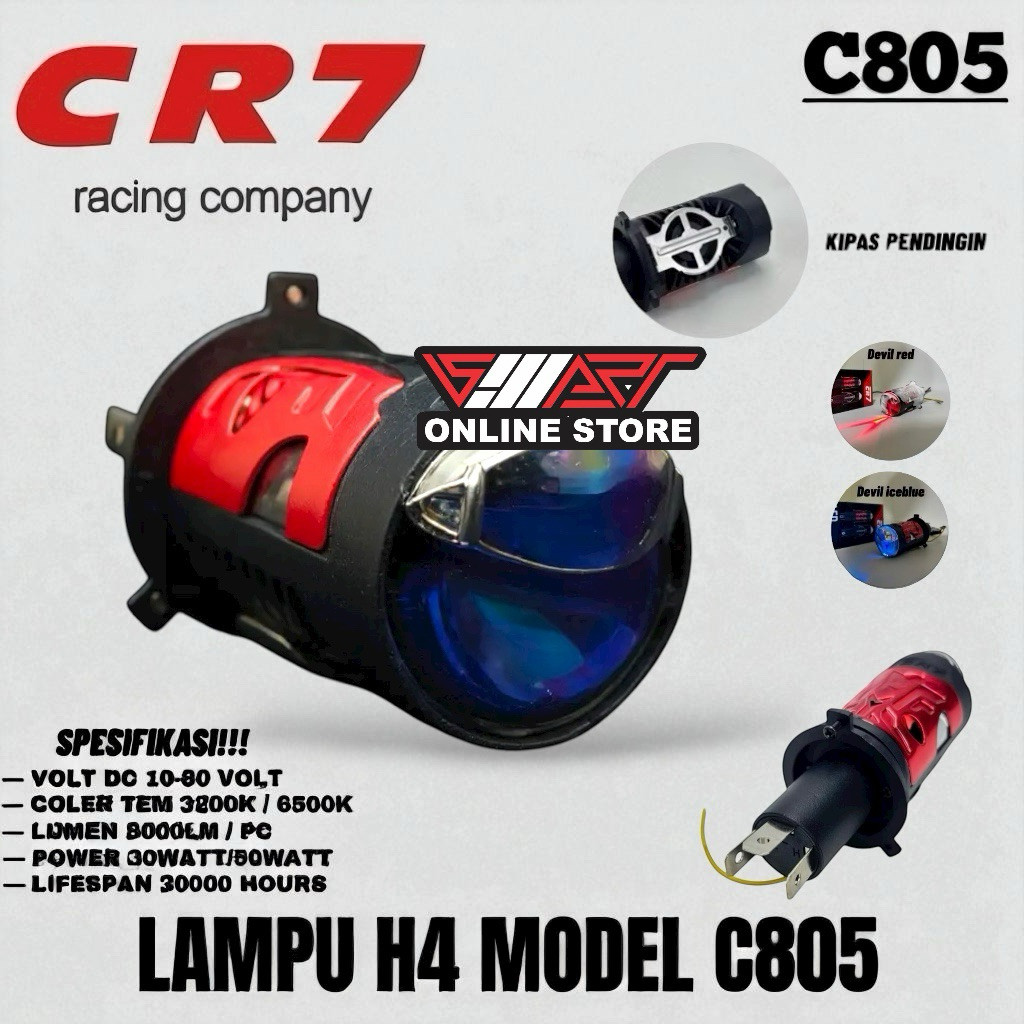CR7 C805 Lampu depan LED H4 Biled Projector Blue Lens Plus Devil Kipas Motor Mobil Dual Laser Lens