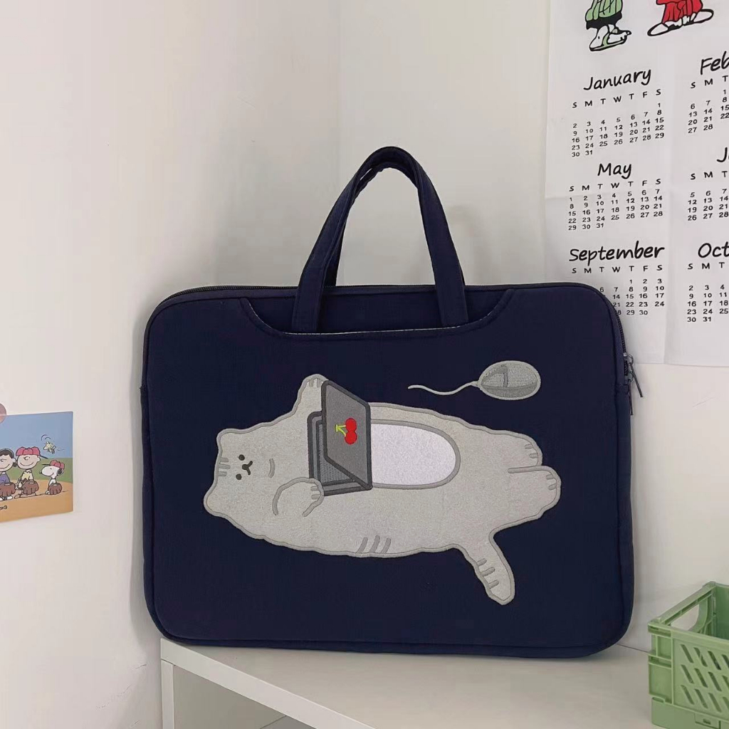 Tas Laptop Sleeve Case Tahan Guncangan Bordir Tangan Gaya Korea 13 14 15 16inch