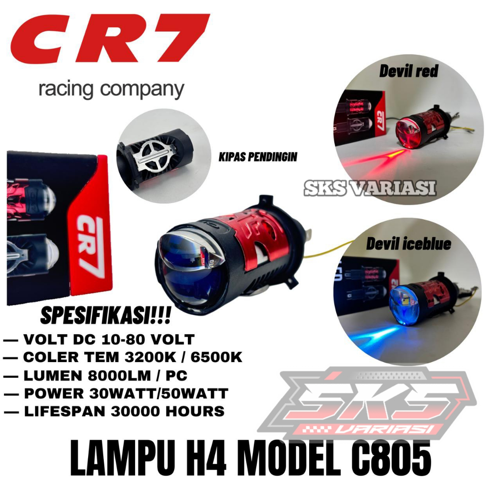 CR7 C805 Lampu Utama LED H4 Biled Projector Blue Lens Plus Devil Laser Kipas Pendingin Motor Mobil