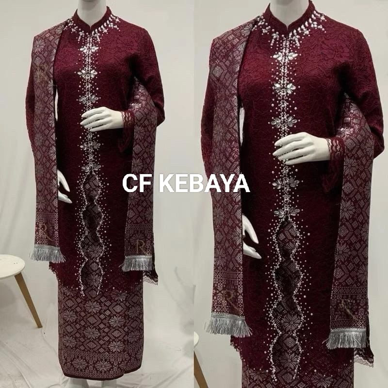 Set Kebaya Brukat Yura Modern - Full Set Songket & Selendang LD 120