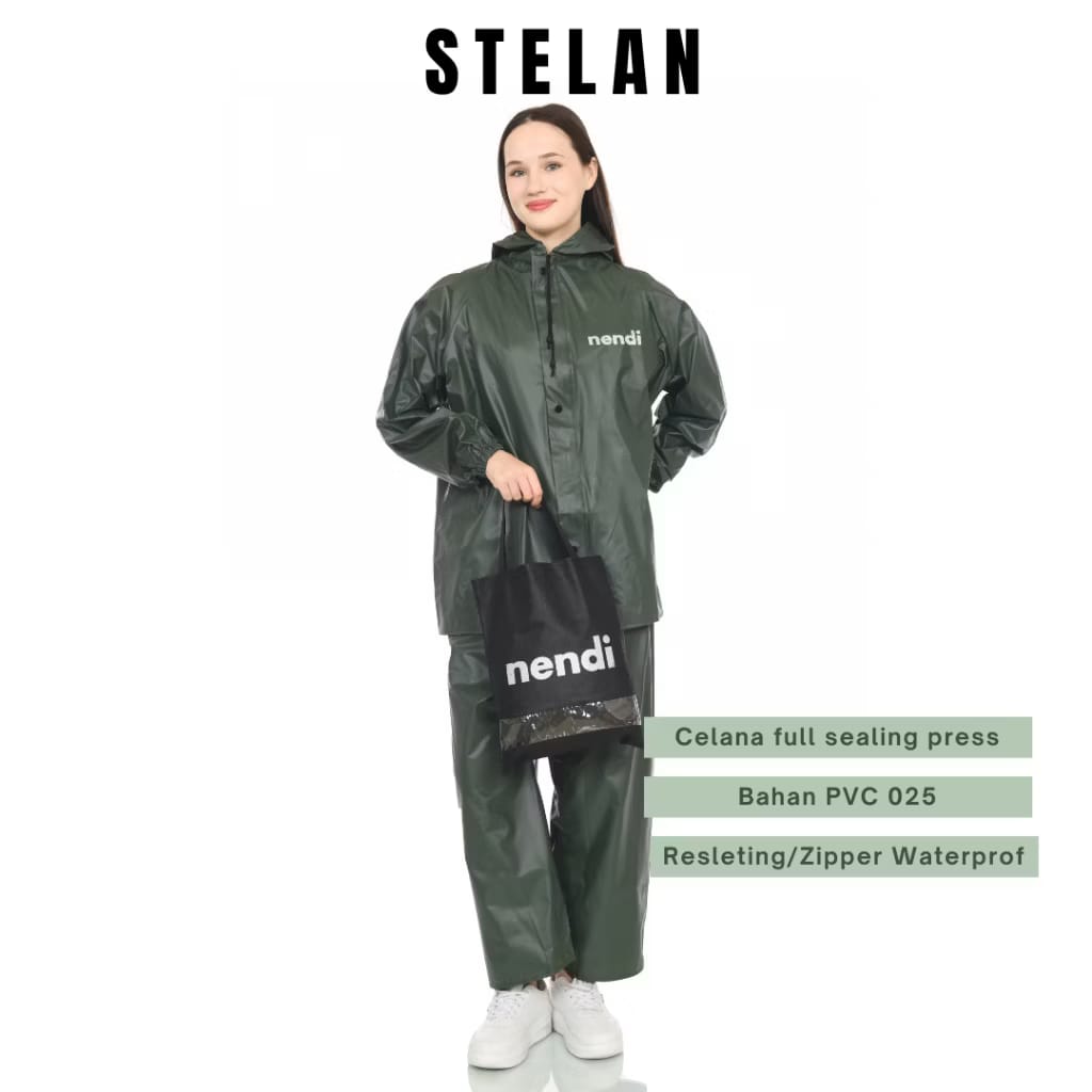 Jas Hujan Dewasa Mantel Hujan Baju Celana Kain PVC 0.25 Tebal Elastis Anti Air