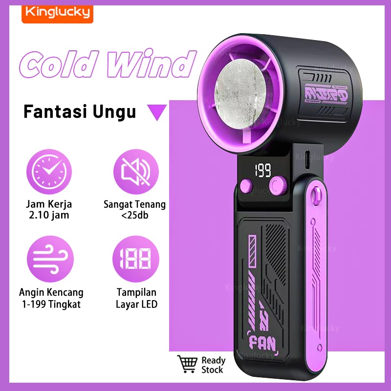 Kinglucky Kipas Kecepatan Tinggi Portabel Semikonduktor Turbo Genggam Foldable Fan Pendingin Mini Tampilan 199 Digital L