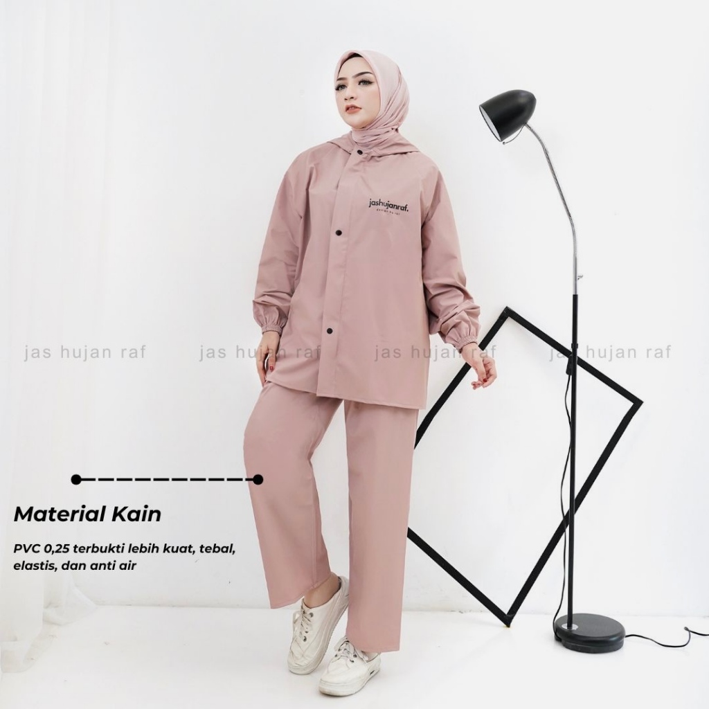 RAF Jas Hujan Dewasa Mantel Hujan Baju Celana Kain PVC 0.25 Tebal Elastis Anti Air