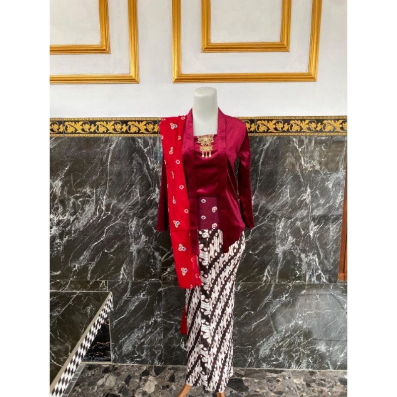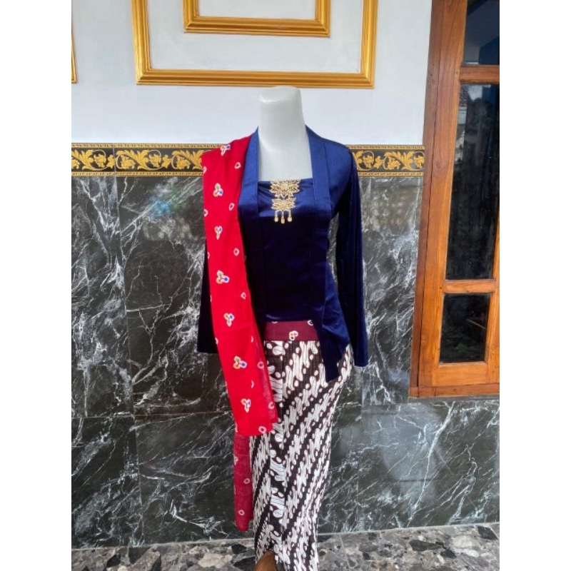 SETELAN KEBAYA BELUDRU KUTUBARU ((kebaya+jarik+selendang))