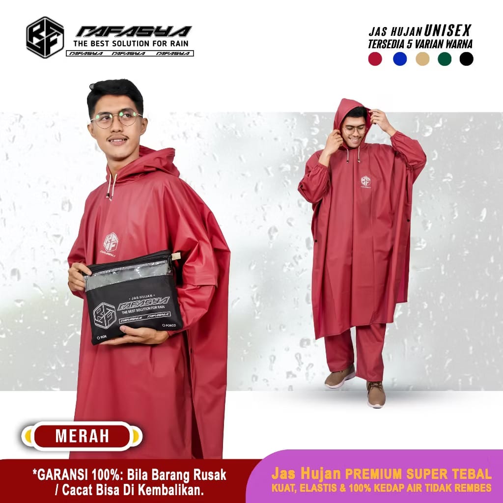 RAIN COAT JAS HUJAN PONCO LENGAN ATAU KELELAWAR HITAM BIRU NAVY HIJAU ARMY MERAH MARUN
