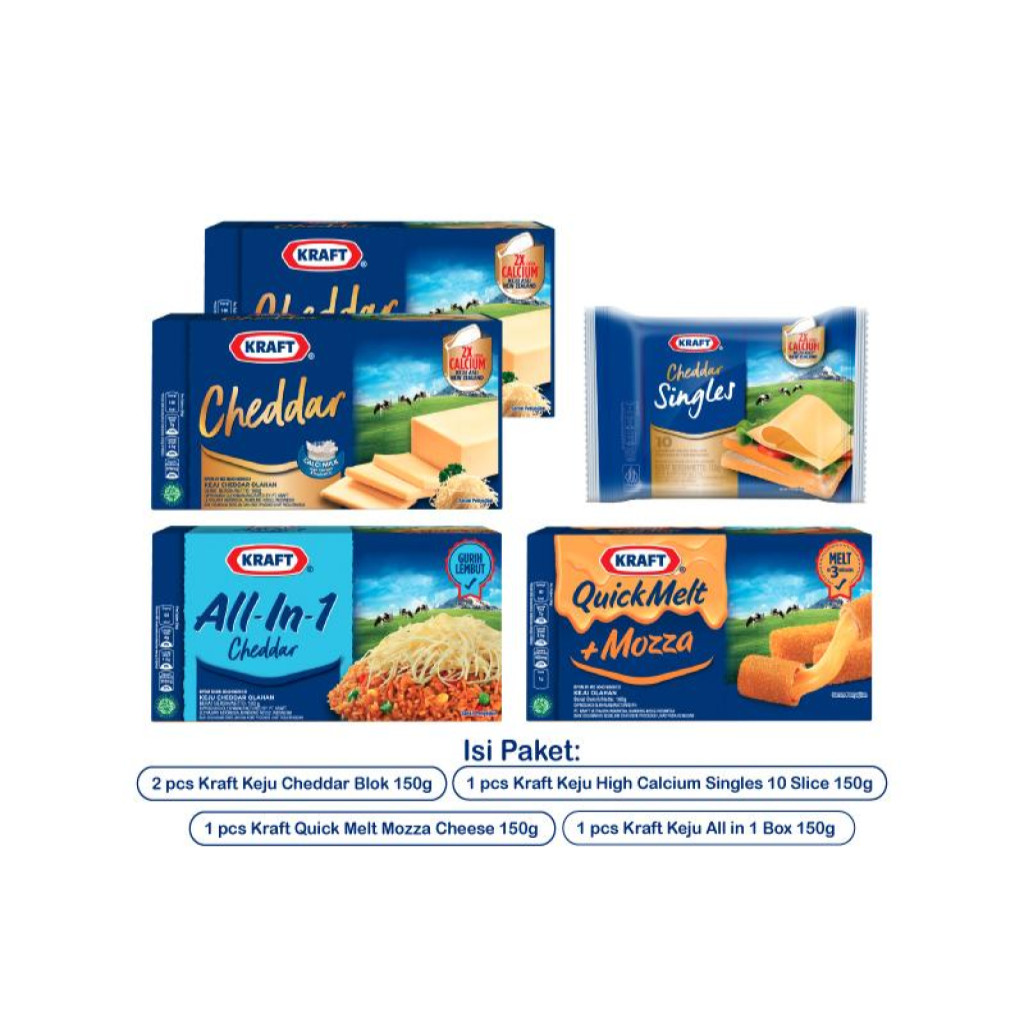 [BUNDLE KRAFT KOMPLIT] Paket Cheddar 150gr, All In One 150gr, Singles 10 Slice 150gr - Keju asli dari susu New Zealand