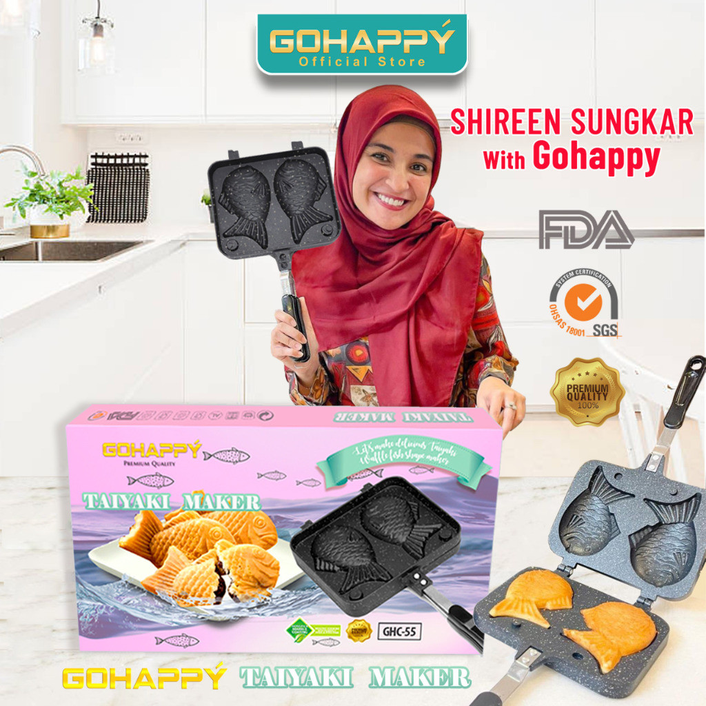 (TRENDNOW) Cetakan kue ikan TAIYAKI GOHAPPY BUNGEOPPANG KOREA - PANCI pancake Premium isi coklat keju sosis model fish - NONSTICK GHC55