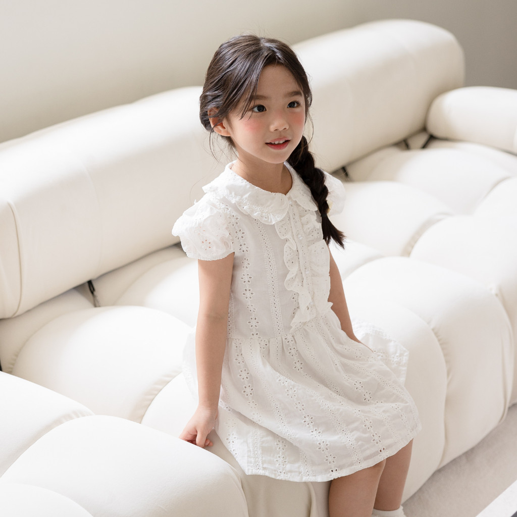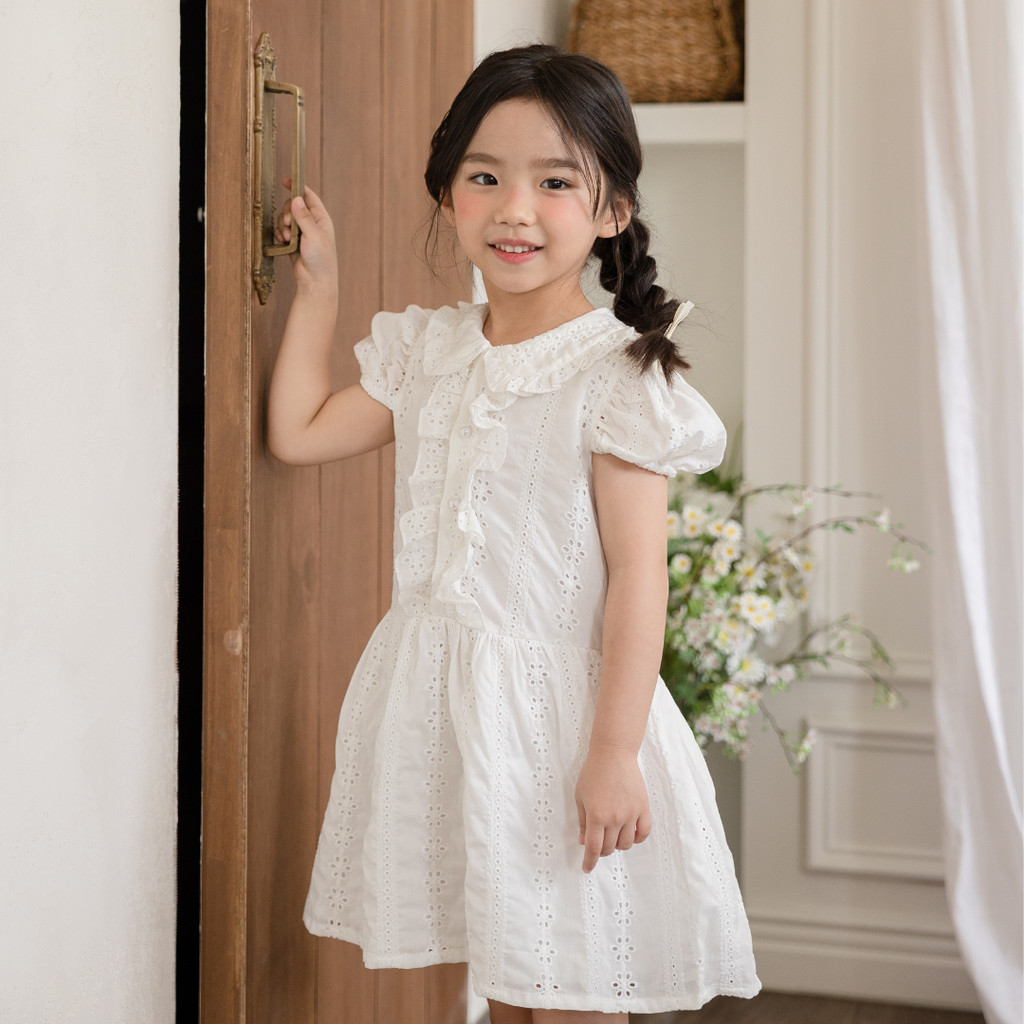MOONJOY FLORENCE DRESS - dress anak perempuan pesta ulang tahun white bordir embroidery petite versailles
