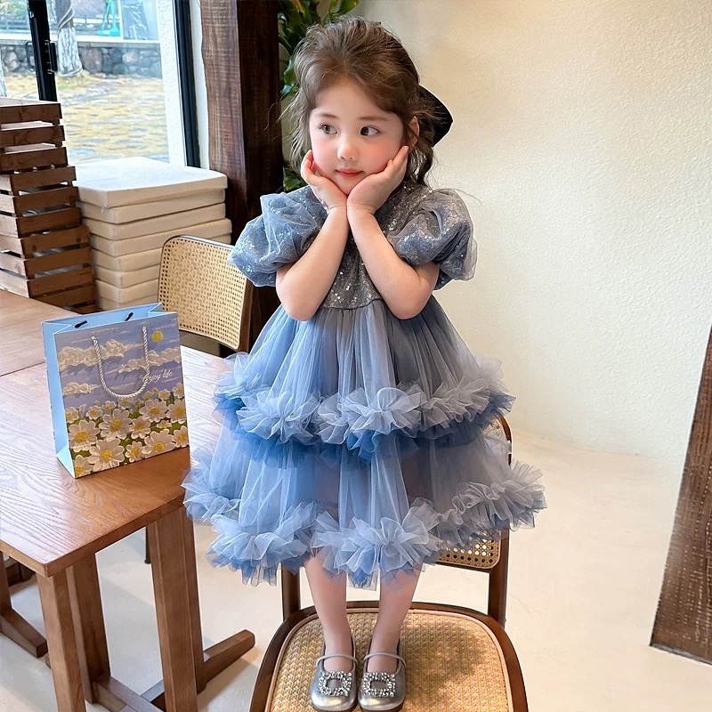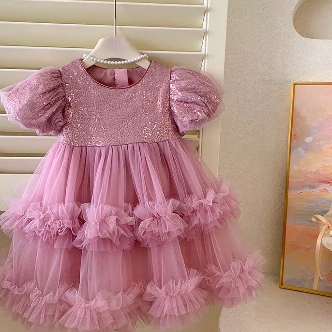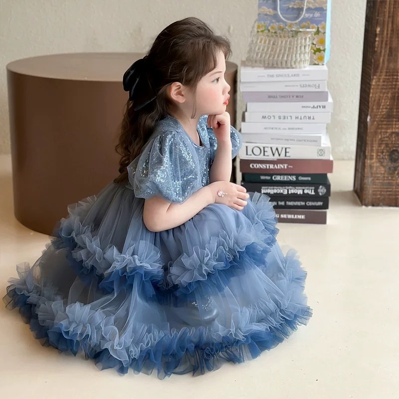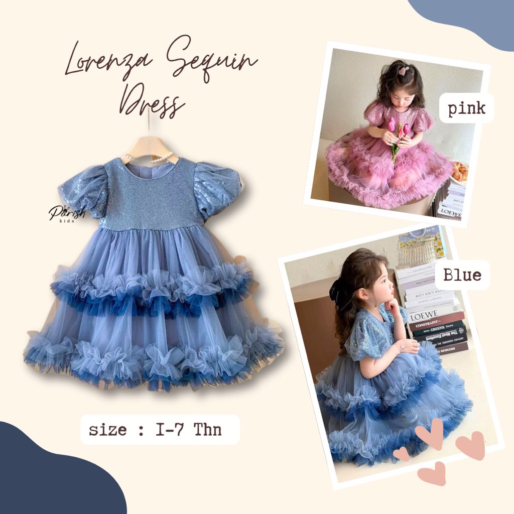 Lorenza Sequins Kids Party Dress/ Dress Pesta Anak Perempuan Lengan Puffy