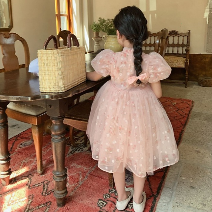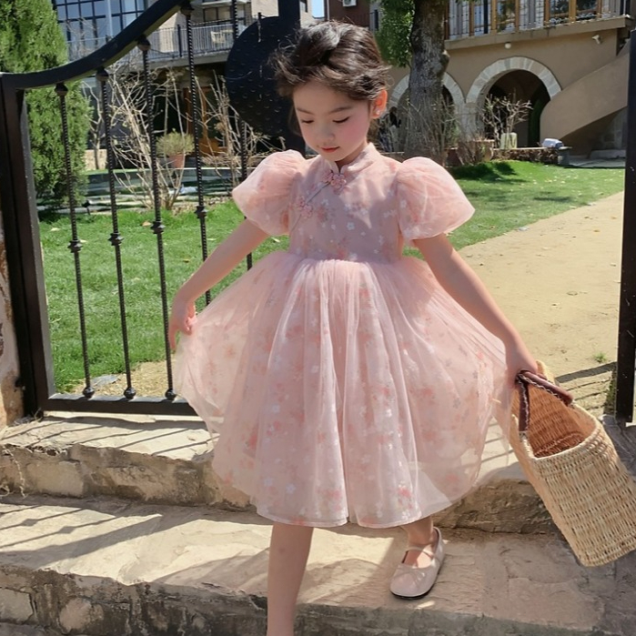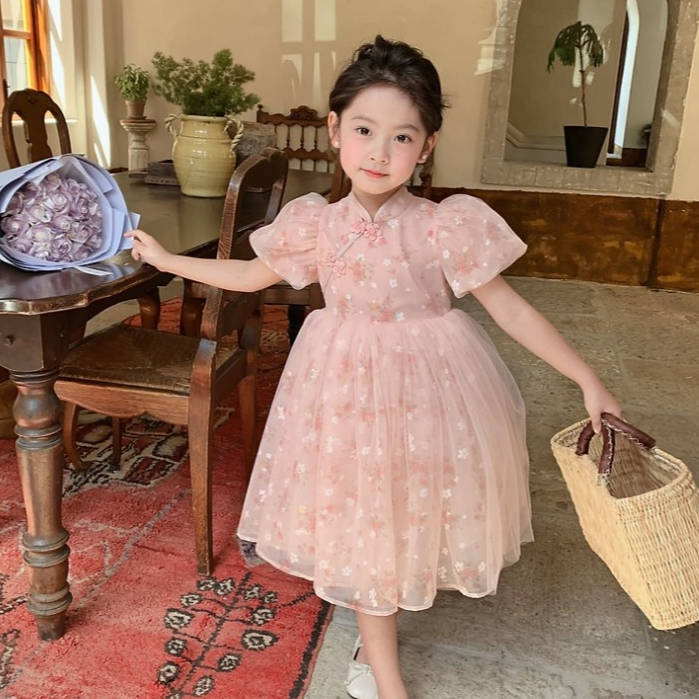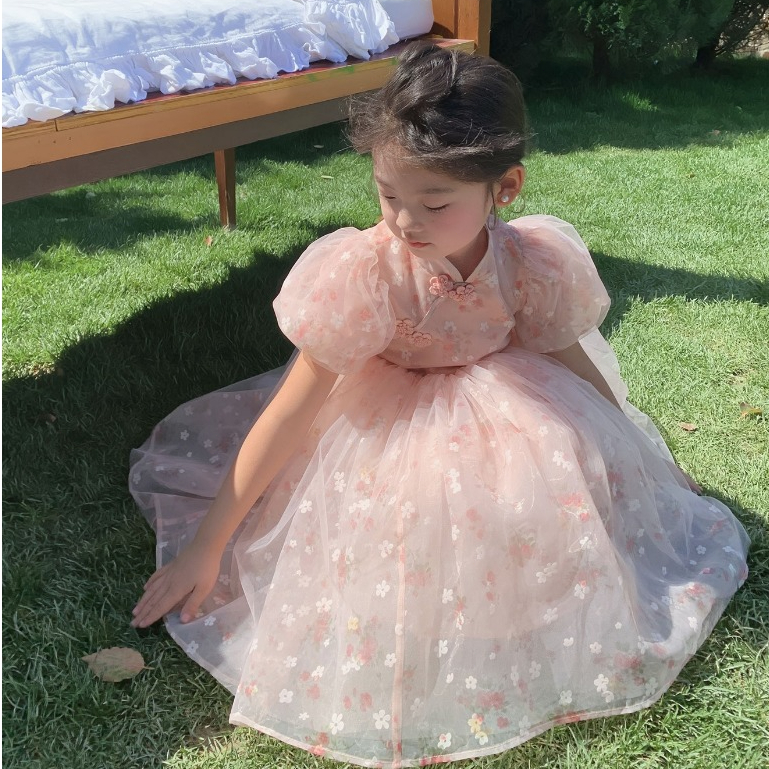 【ENCHANTED PRINCESS】Gaun cheongsam anak perempuan, gaun putri mengembang gaya Cina baru, rok jala bayi perempuan