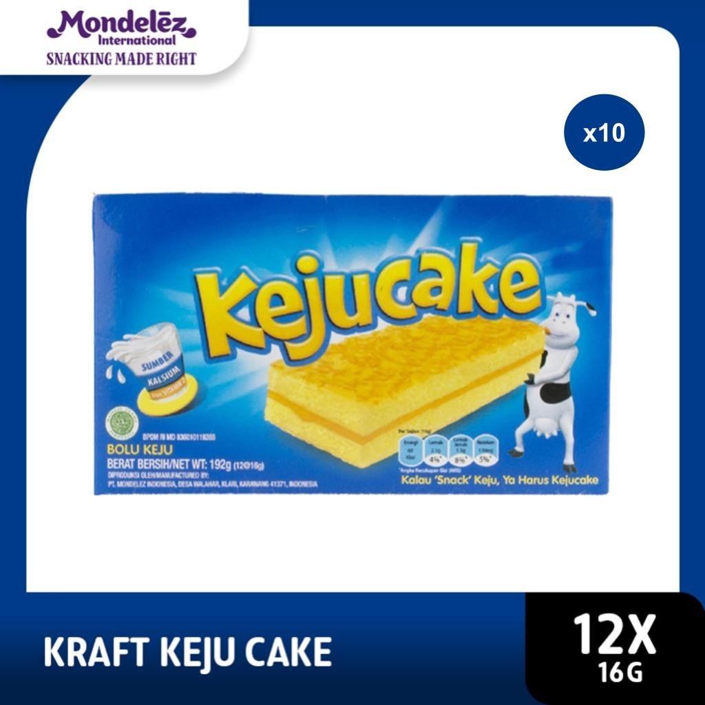 Kraft Keju Cake Bolu Box 12x16g, kue bolu lembut dengan taburan keju cemilan favorit keluarga x 10 (Family Pack)