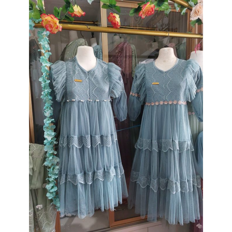 Gamis Pesta Anak Perempuan mutiara inara Dress Bahan Brukat mix Tille