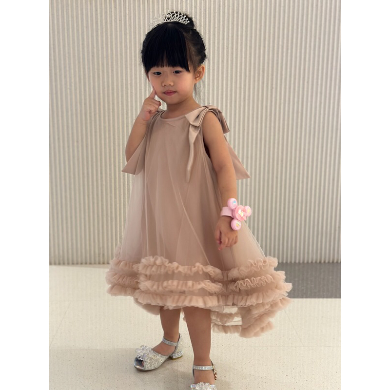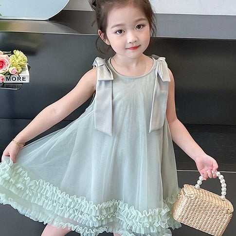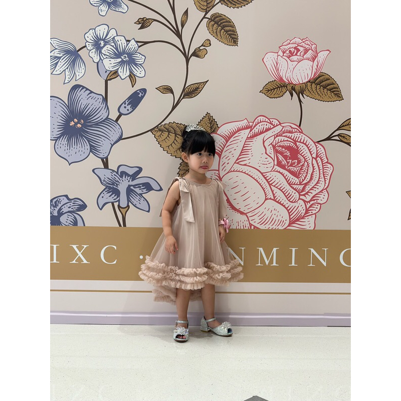 Kirana Dusty Pink Green Kids Dress/ Dress Pesta Simpel Anak