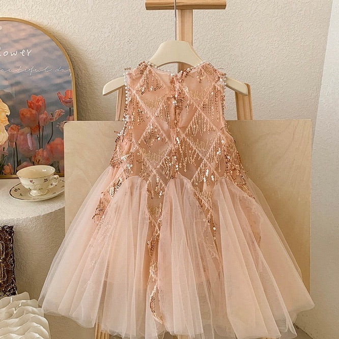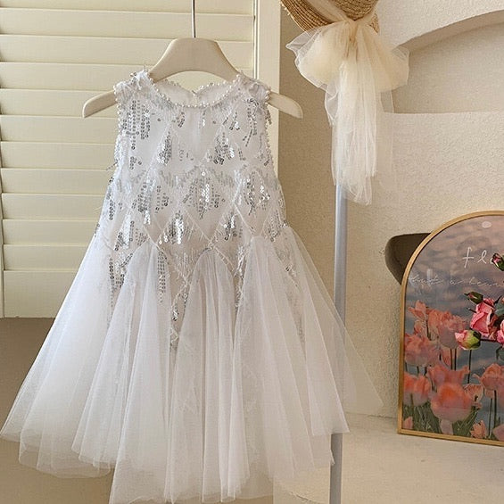 Anna Rose Gold White Party Dress/ Dress Anak Pesta