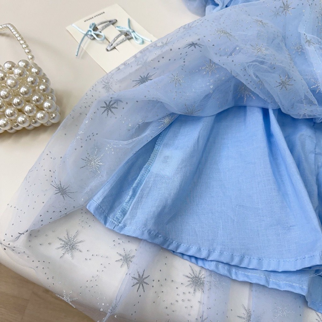 EOBaby L104 Dress Anak Perempuan Gaun Pesta Elsa Biru Muda FREE JEPITAN RAMBUT PITA Korean Style PREMIUM