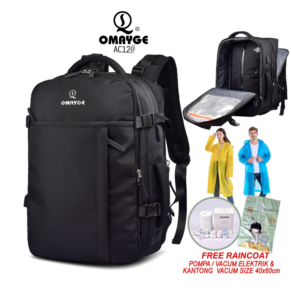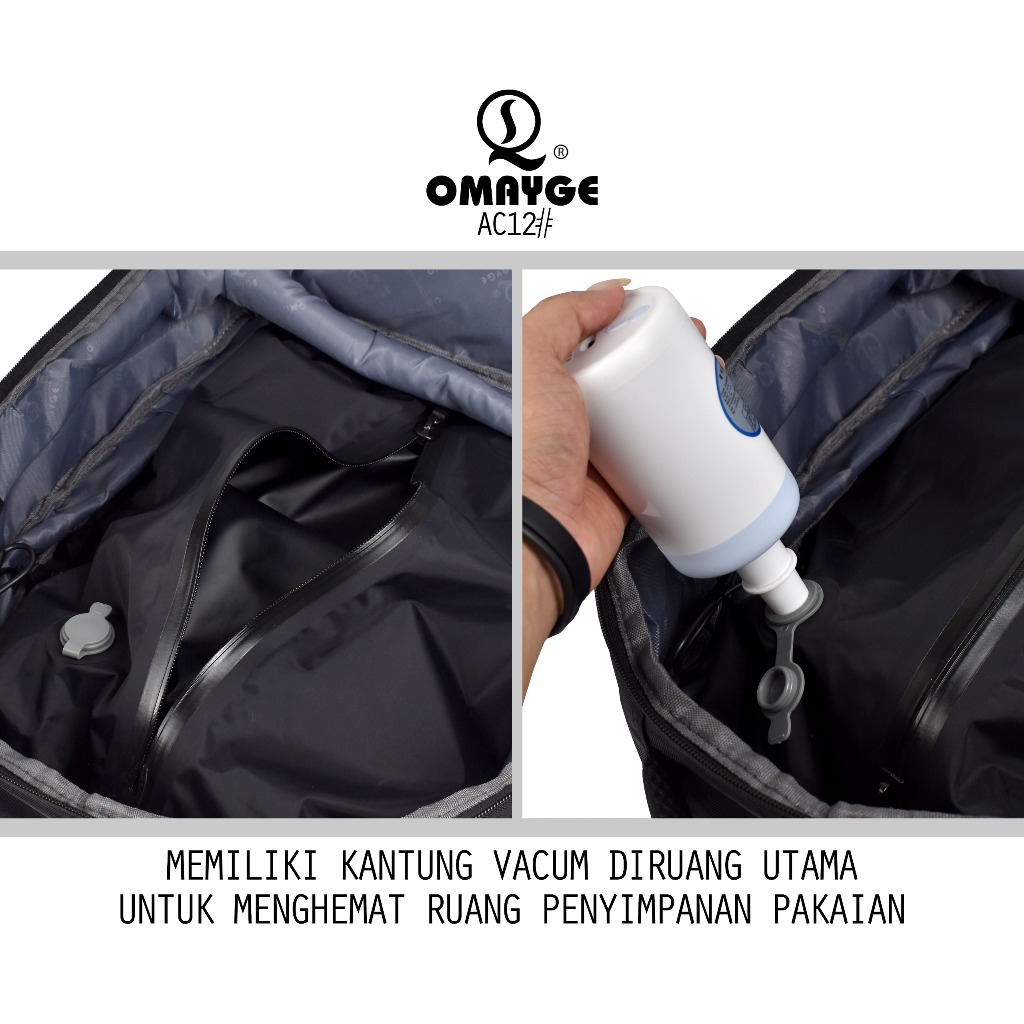 Omayge AC12 Tas Travel Tas Ransel Vacuum Compression + FREE Vacuum & Plastik & Rain Coat