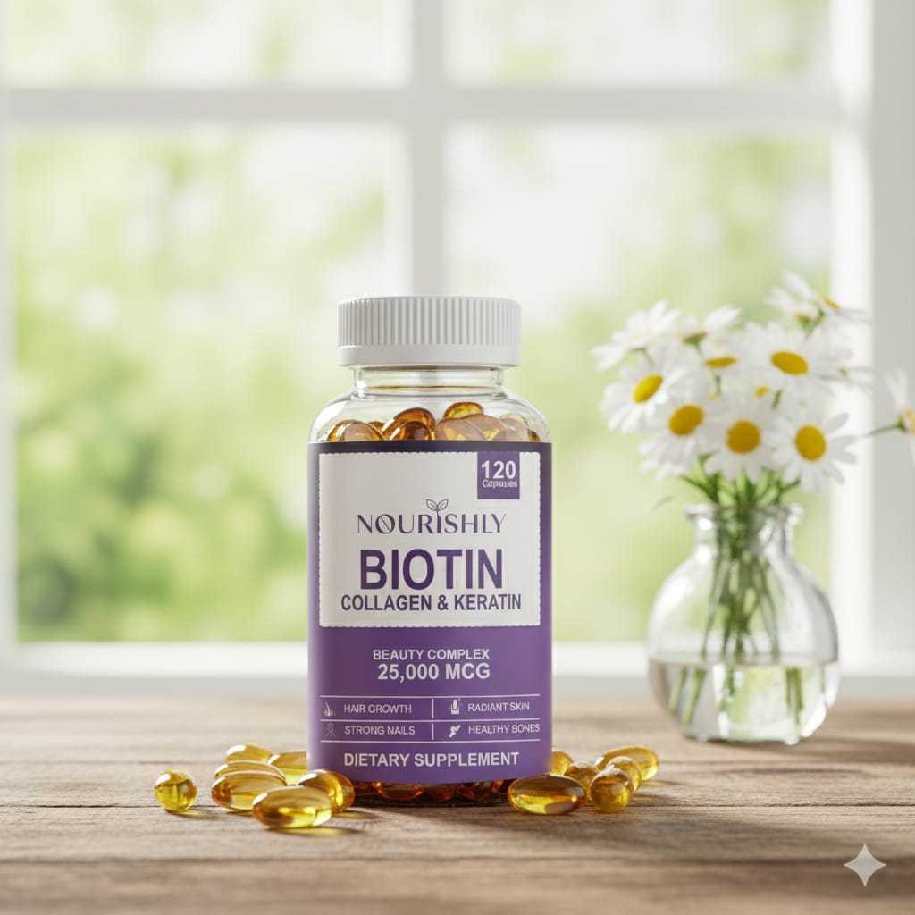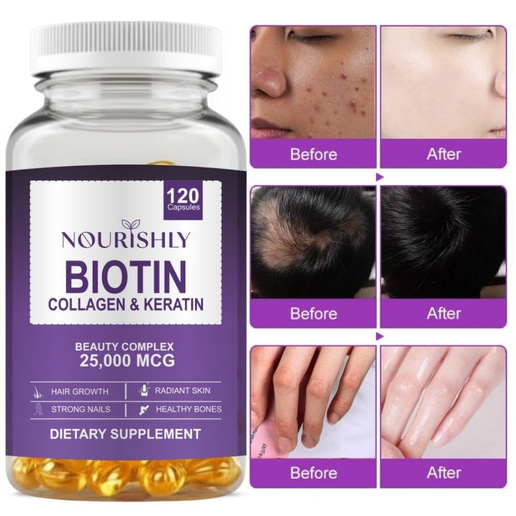 Biotin Vitamints Capsules Whit Collagen & Keratin 25000 Mcg For Healthy Hair Nails & Bones Radiant Skin For Women & Men