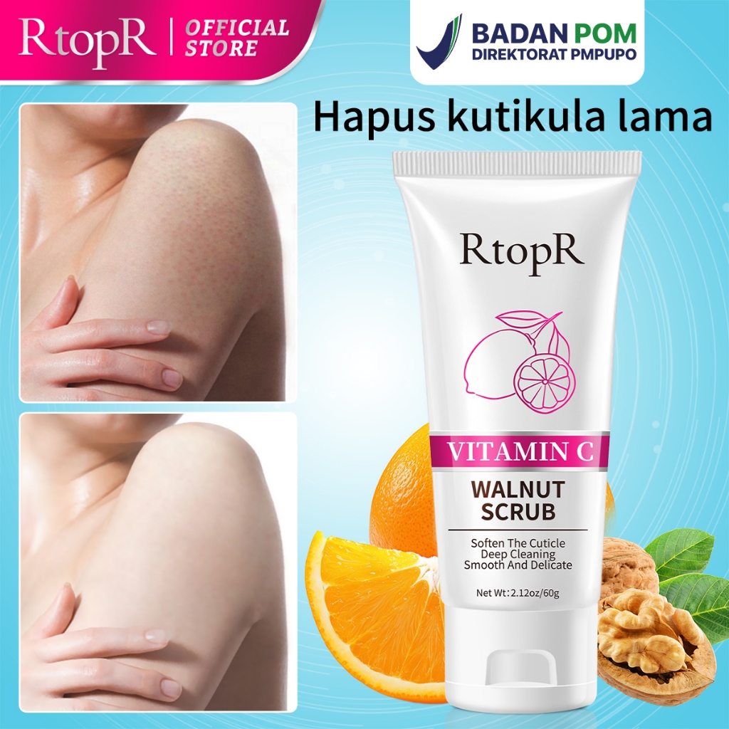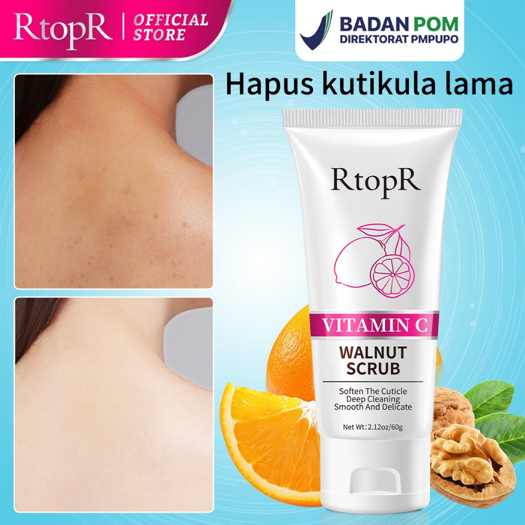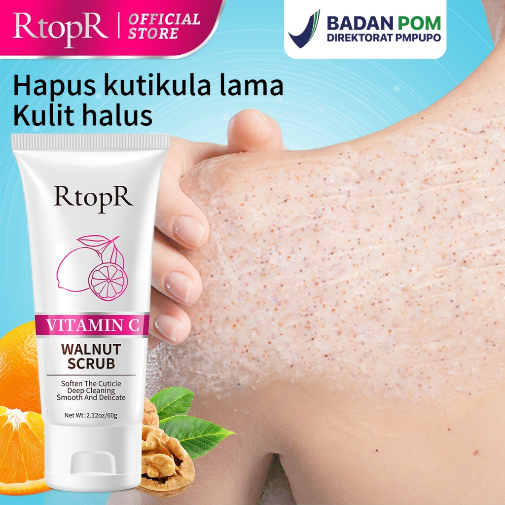 RtopR 【BPOM】 Vitamin C Walnut Scrub, Scrub Wajah & Badan - Angkat sel kulit mati, haluskan dan glowing! UNTUK PRIA DAN W