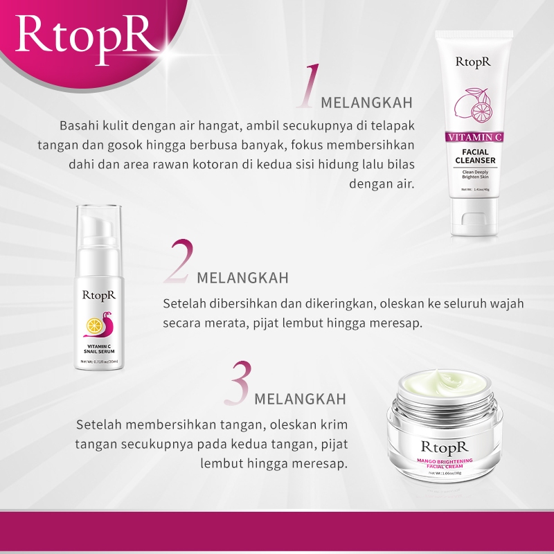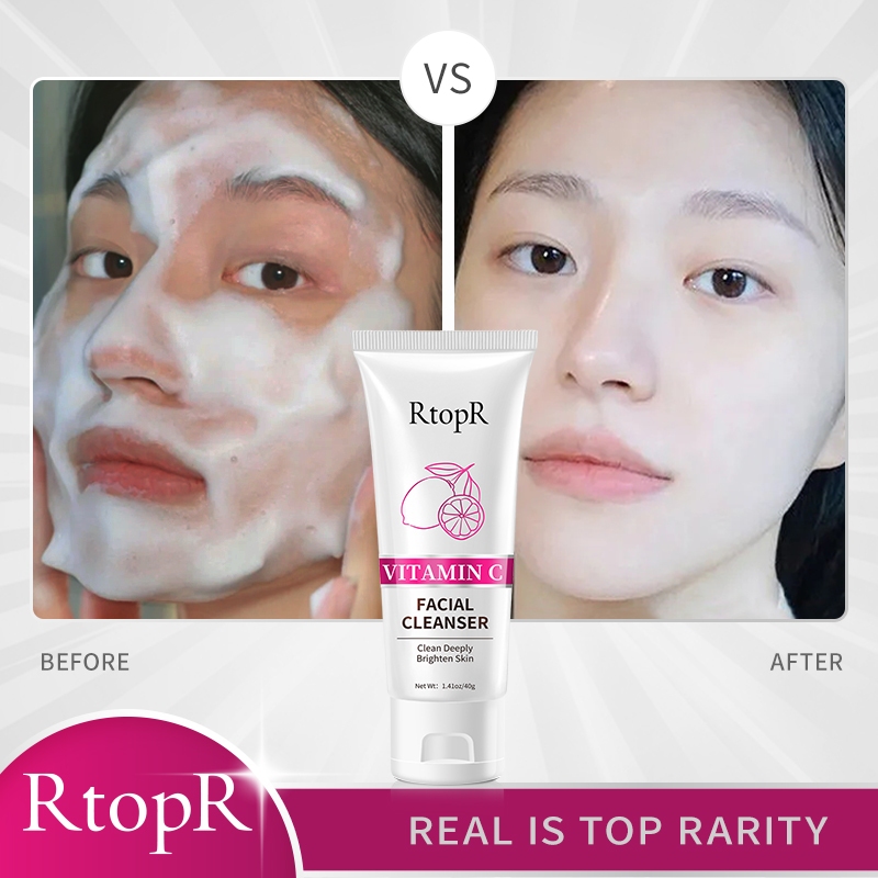 RtopR Pembersih Wajah Vitamin C Wajah Pemutih Mencuci 40g+ Serum Pemutih Vitamin C Perawatan Kulit Anti-Penuaan 20ml+Kri