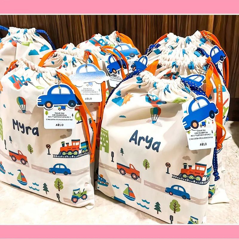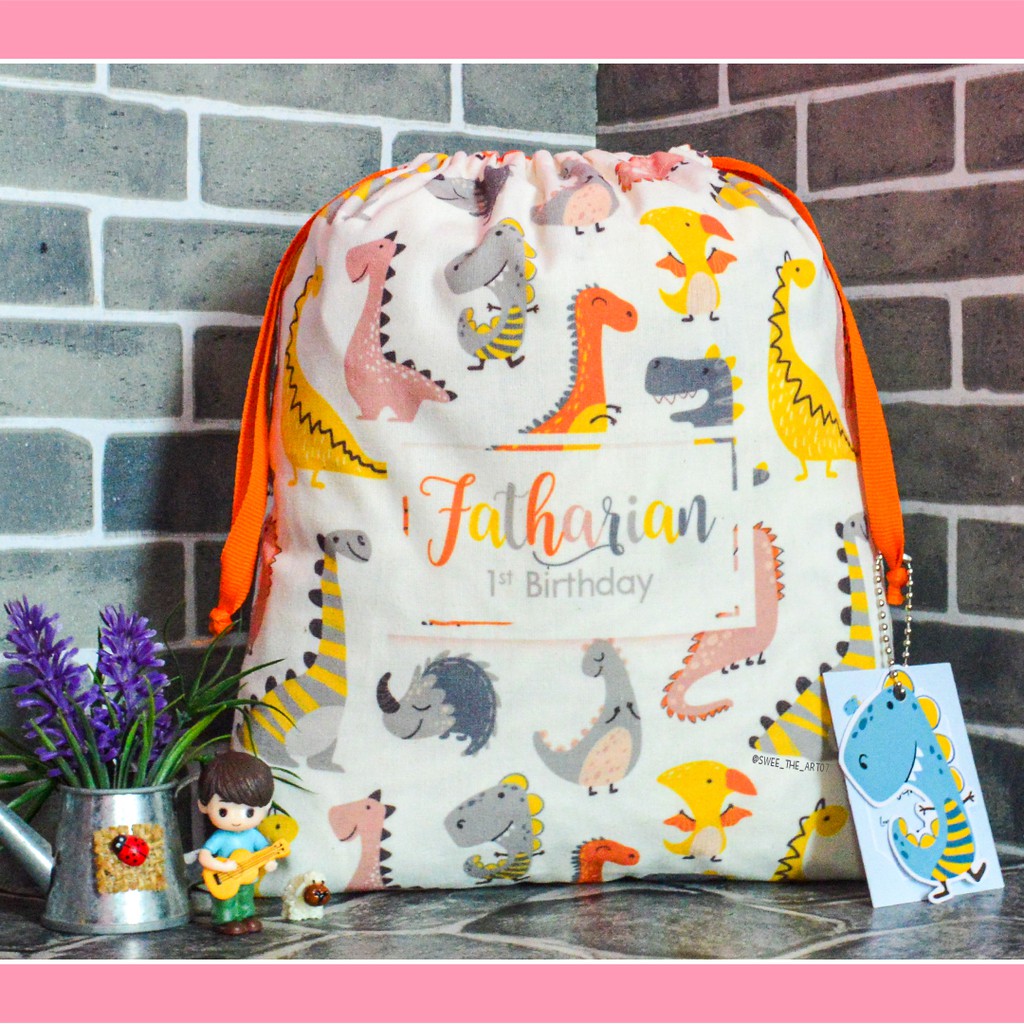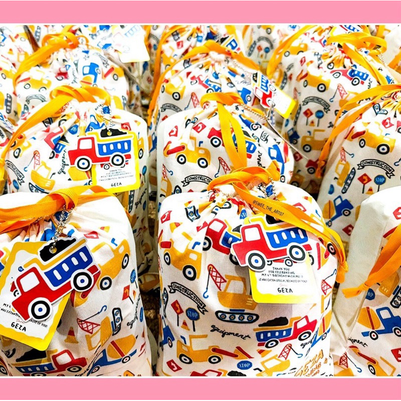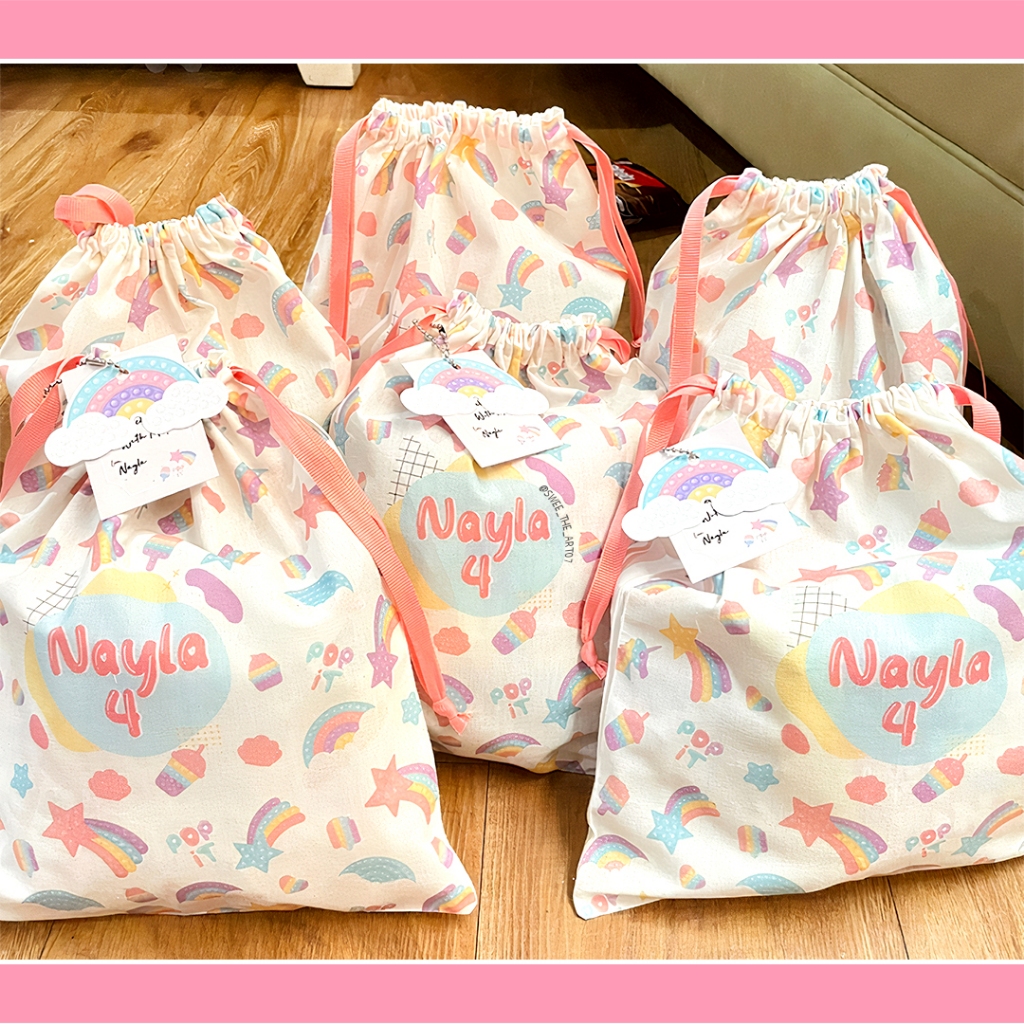 Full Print 1 sisi Goodie Bag Pouch Serut Belacu Tas Ulang Tahun custom ukuran 25x30