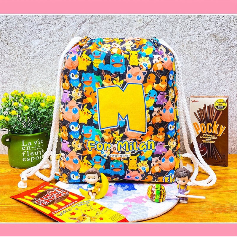 Tas Ransel custom Serut Goodie Bag Ultah Full Print 1 Sisi ukuran 27x36