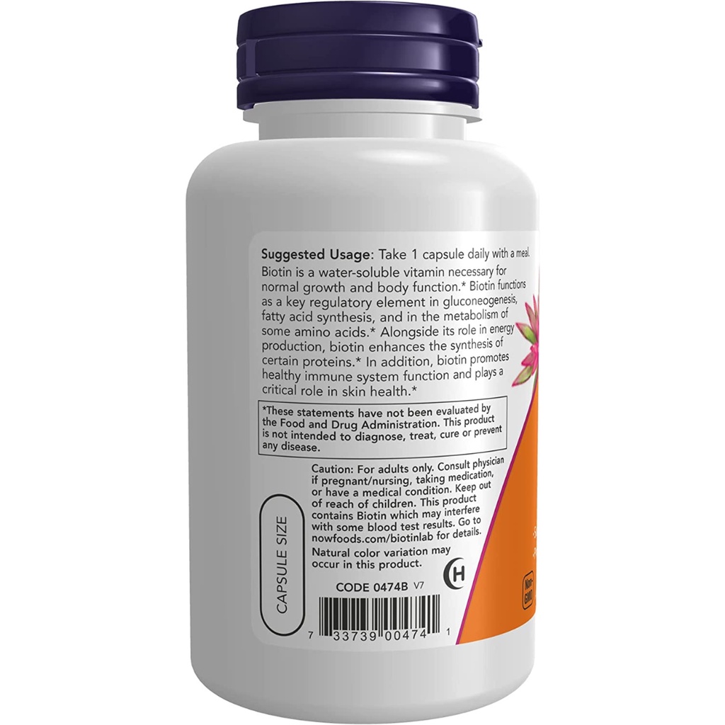 Now Foods Biotin 5000 mcg Suplemen Rambut Kuku 120 Veg Capsules