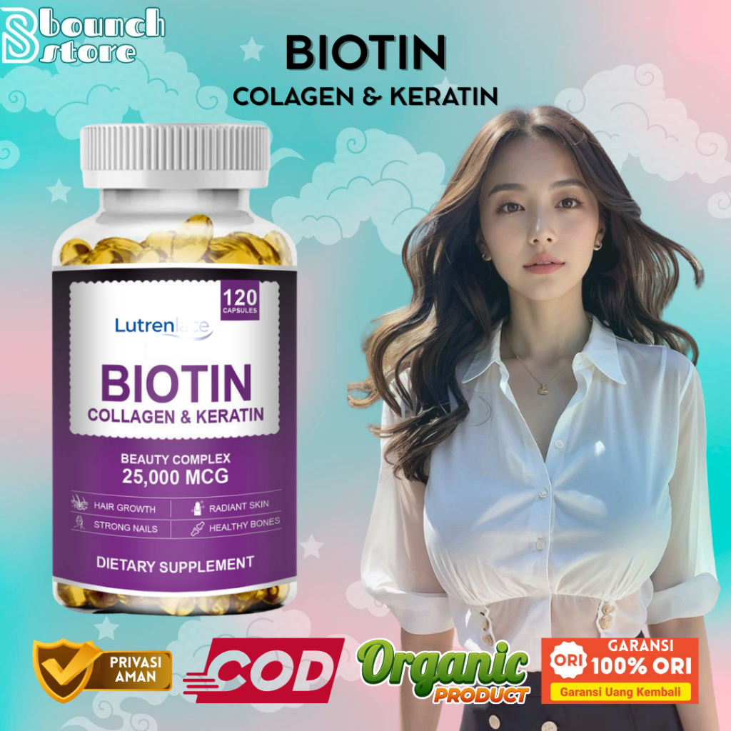 Biotin Collagen & Kerati Multivitamin Suplemen & Vitamin Perawatan Rambut, Kuku dan Kulit Biotin Vitamins Capsules with