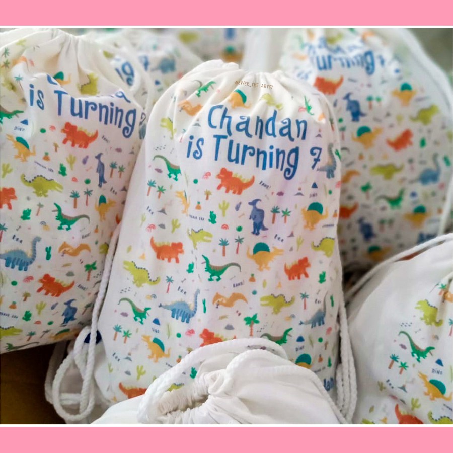 Tas ransel custom serut belacu / tas ulang tahun desain suka-suka / goodie bag ultah custom ukuran 27x36