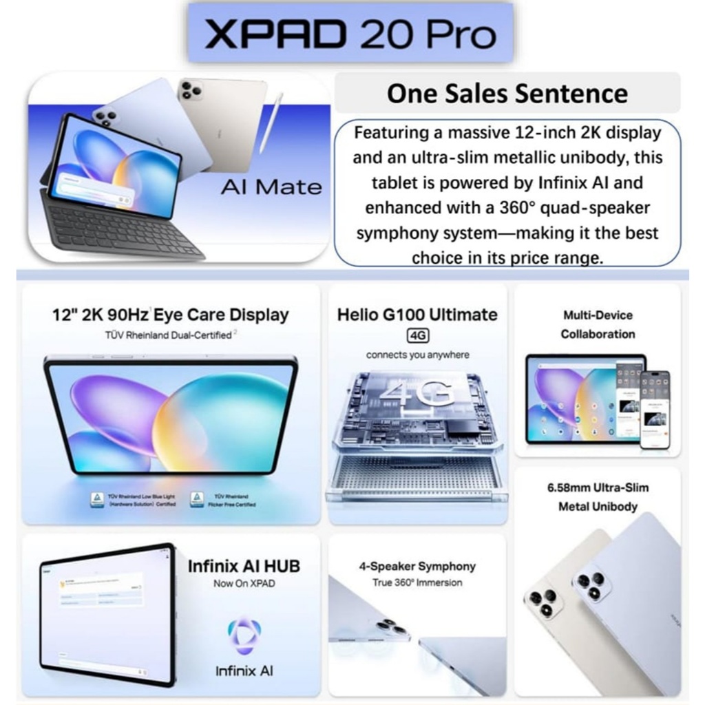 Infinix XPAD 20 PRO 8/256 4G LTE Helio G100 Ultimate 12" 2K Display Garansi Resmi