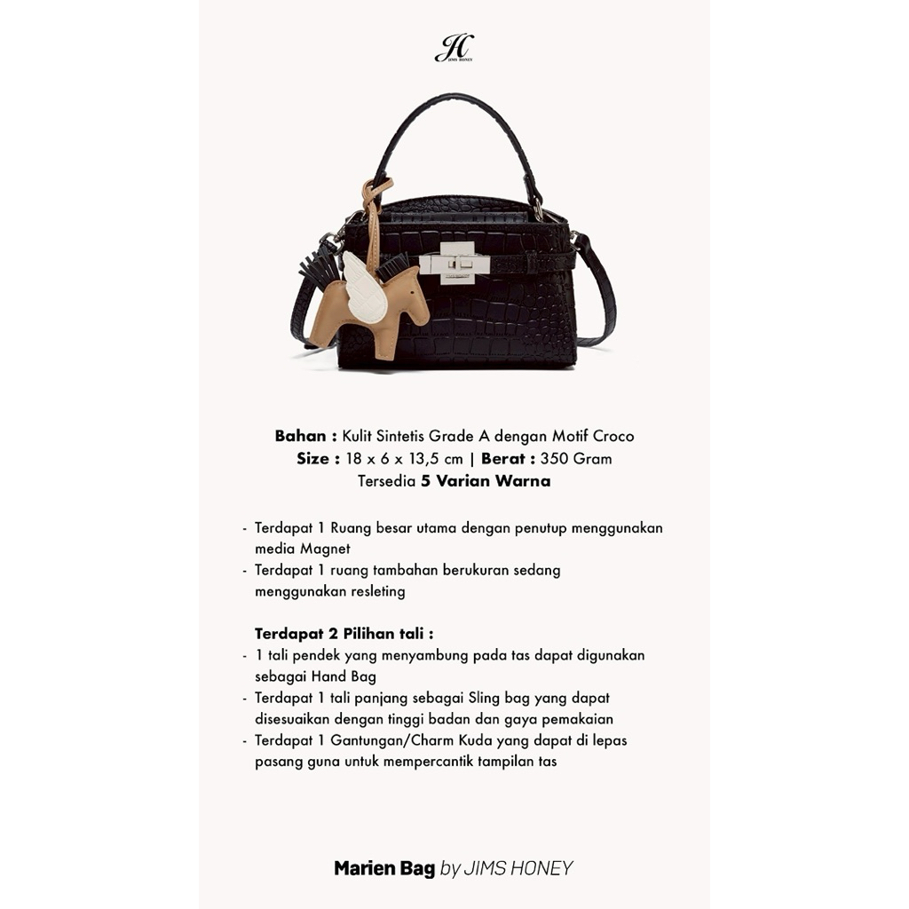 JIMS HONEY MARIEN BAG JH-371 TAS SELEMPANG WANITA SLING BAG HAND BAG TAS JINJING TAS CROCO FREE BAGCHARM