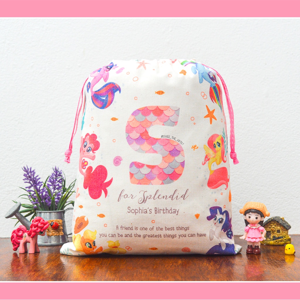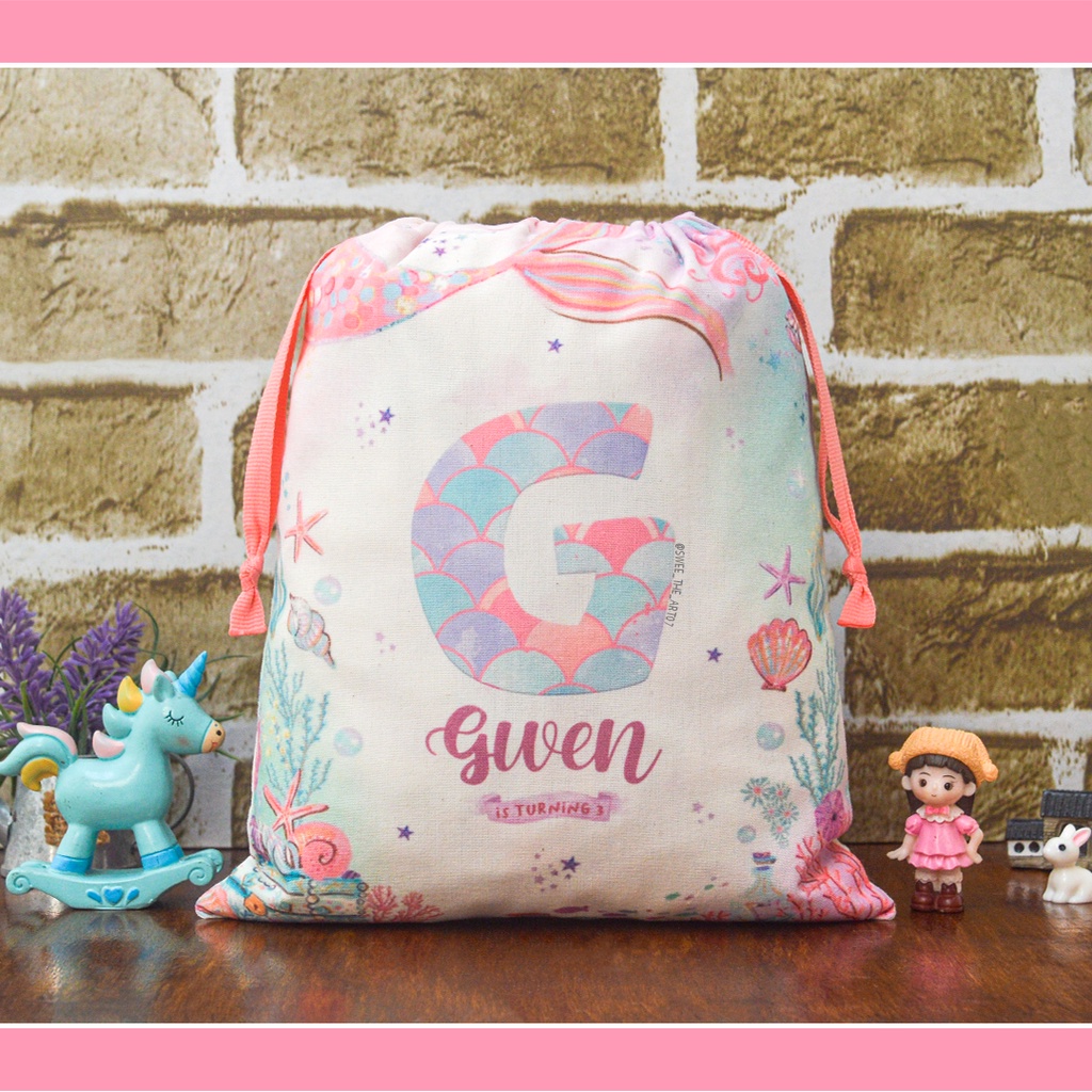 Goodie Bag Pouch Serut Belacu Tas Ulang Tahun custom ukuran 20x25