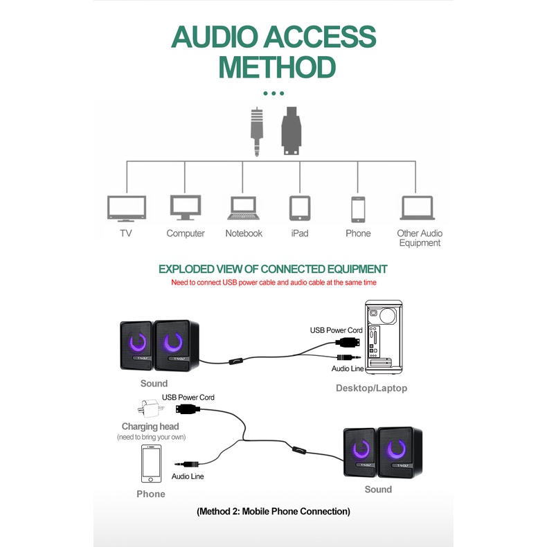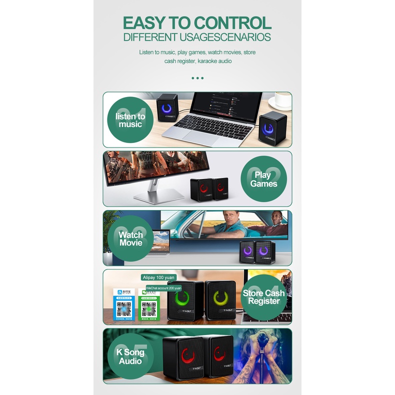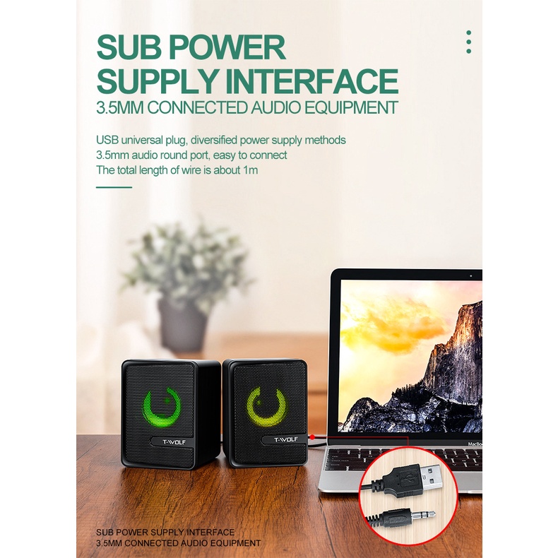 BESTOOL Speaker Multimedia Speaker Laptop Speaker Subwoofer RGB Light Laptop Computer USB Speaker