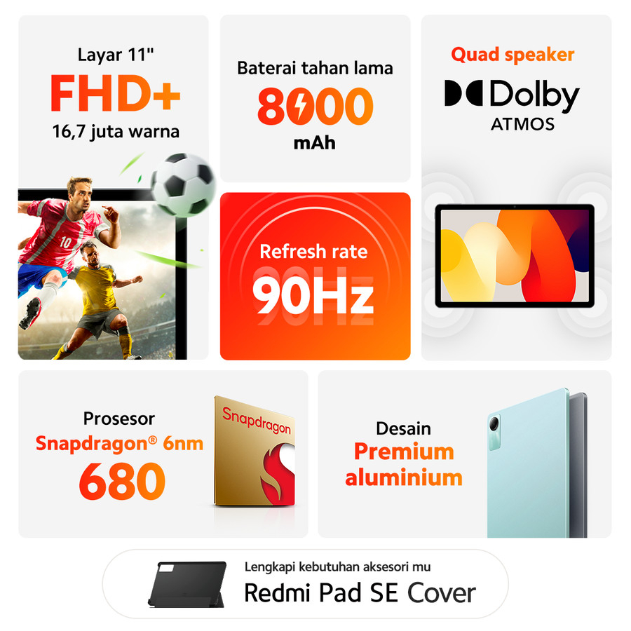 Xiaomi Redmi Pad SE (4GB/128GB) | Snapdragon 680 Layar 11" FHD+8000mAH - Garansi Resmi