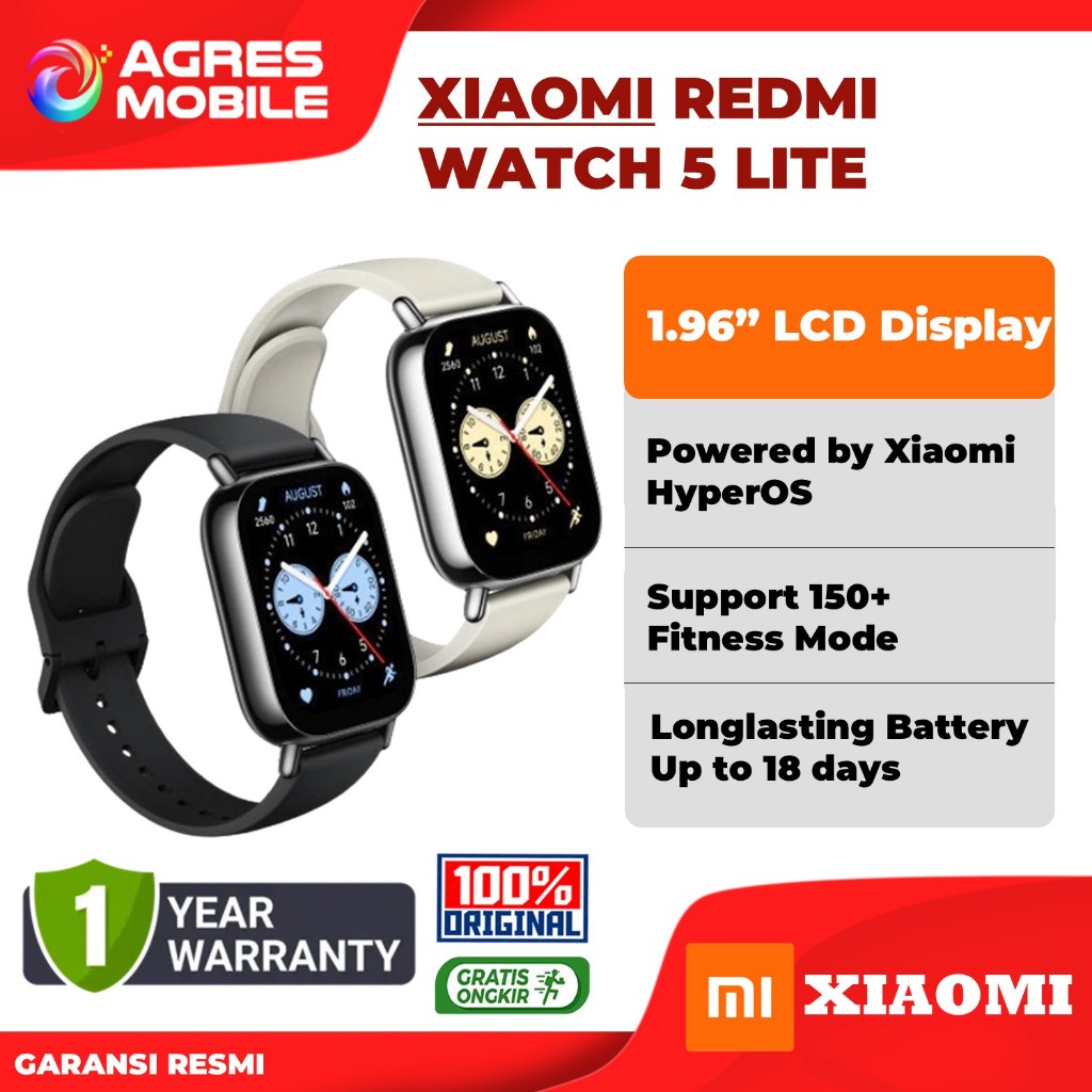 Xiaomi Redmi Watch 5 Lite | 1.96" AMOLED Display | Built-in GNSS | Baterai hingga 18 hari