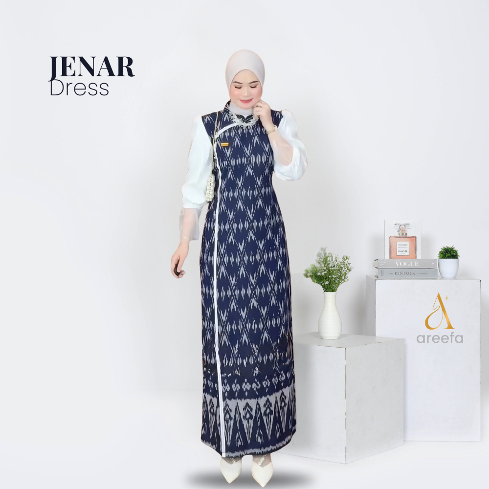 Areefa - Jenar Dress Gamis Tenun Etnik Kombinasi Satin Tile Premium Wanita Remaja Kondangan Mewah