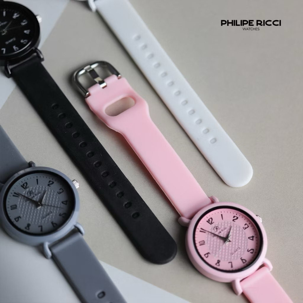 PhiLipe Ricci Jam Tangan Wanita Analog Strap Karet Diameter Bulat Kecil Desain Simpel Modern 6234 Woman Watches