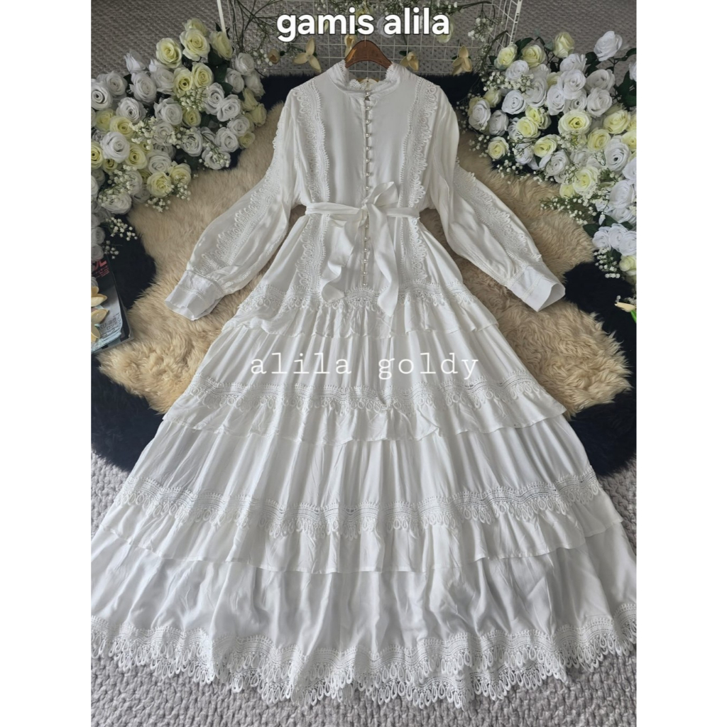 Alila Goldy Premium Gamis Import Bkk Model Umpak-Umpak Bahan Katun Pakaian Pesta Busana Muslim