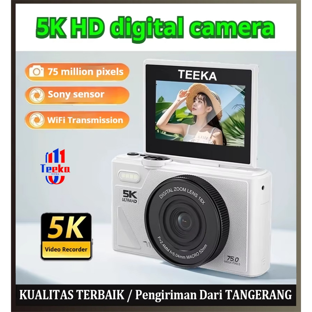 Original TEEKA 75MP Digital Kamera Wifi 5K Video 18X Digital Zoom Dengan Dukungan Selfie Koneksi WIFI untuk Hadiah Pemul