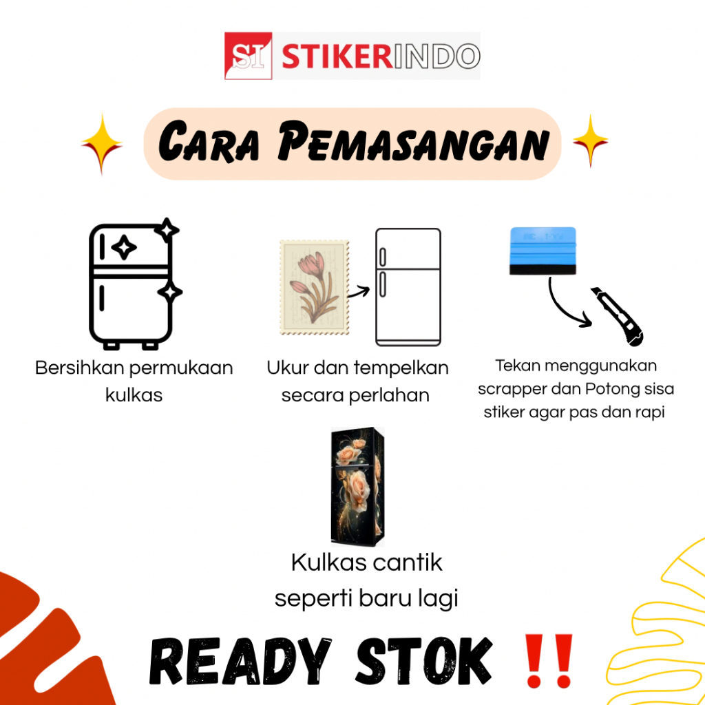 Sticker Stiker Kulkas 1 Pintu Dan 2 Pintu Motif Bunga 3