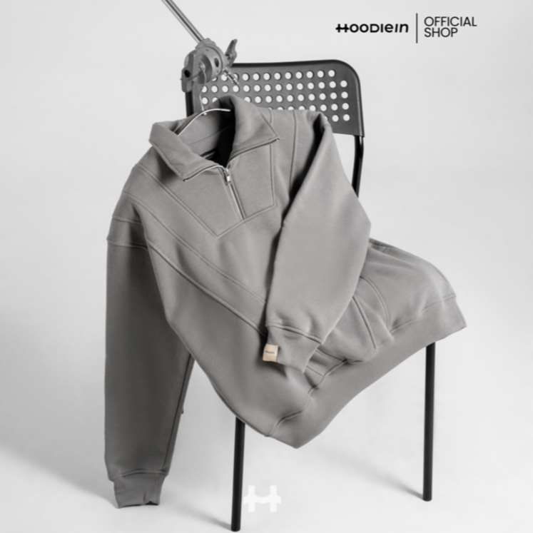 [Star] Terbaru Hoodie.In Half Zipper Cotton/Katun Regular Boxy - Steel Grey UNISEX (Pria/Wanita)