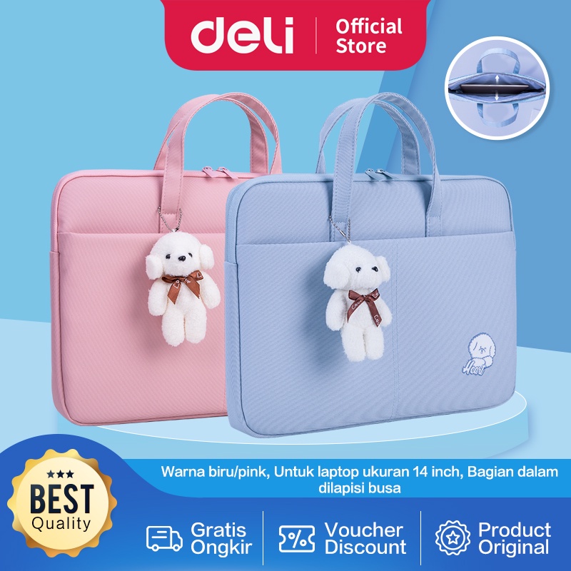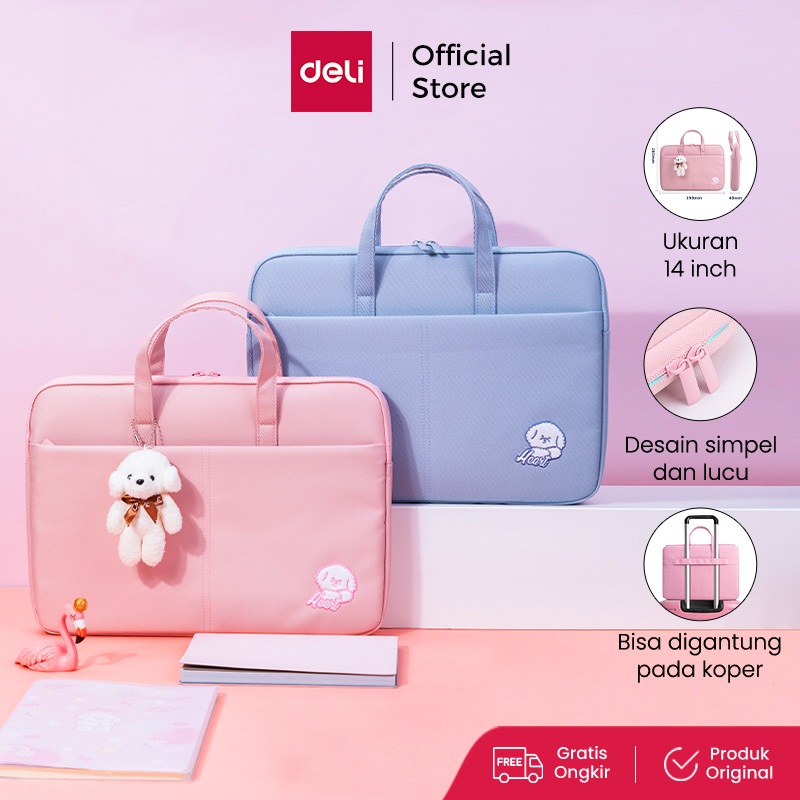 Deli Koper Terylene Tas Laptop 14inch Pink/Biru, Lapis Dalam Busa 63756